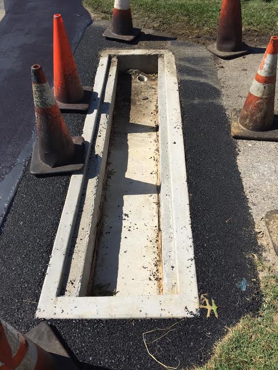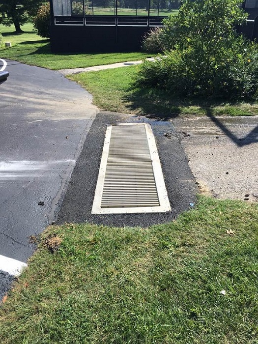 Sealing, crack filling and line stripping. Installation of new catch basin